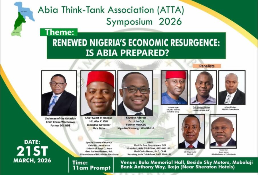 Abia leaders of thought will gather at the popular Bola Memorial Hall, Mobolaji Bank Anthony way, Ikeja, Lagos, on March 21, to discuss the readiness of Abia state to play prominence in Nigeria’s economic resurgence.